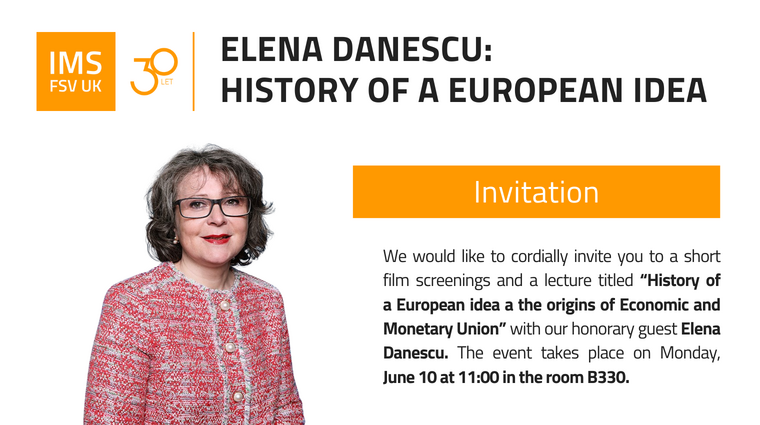 We would like to cordially invite you to a short film screenings and a lecture titled “History of a European idea a the origins of Economic and Monetary Union” with our honorary guest Elena Danescu. The event takes place on Monday, June 10 at 11:00 in the room B330.